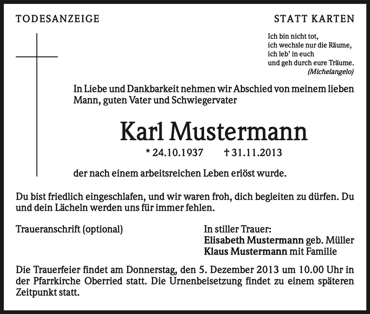 Sollten Sie gezielt Personen ansprechen wollen, die die Zeitung nicht erhalten oder gar weiter weg wohnen, bieten wir auch den im Haus Trauerdruck an. Wir haben immer eine Auswahl verschiedener hochwertiger Trauerkarten an Lager und können so kurzfristig drucken. Auch Handkärtchen für die Trauerfeier oder Dankeskarten sind möglich.
